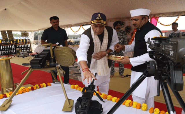 रक्षा मंत्री ने शस्त्र पूजा का महत्व बताते हुए कहा- शस्त्रों के प्रति समर्पण, असुर शक्तियों पर दैवी शक्ति की विजय की महानता को दर्शाता है। इसलिए जब हम किसी शस्त्र की पूजा करते हैं, तो हम इस शक्ति का इस्तेमाल केवल धर्म और न्याय की रक्षा के लिए करने का संकल्प भी लेते हैं।
