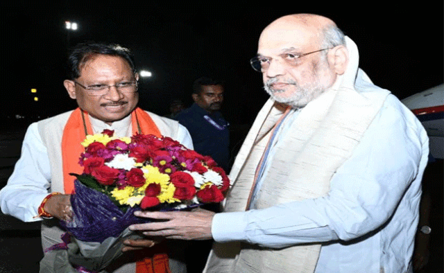 रायपुर। केंद्रीय गृह मंत्री श्री अमित शाह आज छत्तीसगढ़ के दो दिवसीय प्रवास पर राजधानी रायपुर पहुंचे। मुख्यमंत्री श्री विष्णु देव साय ने स्वामी विवेकानंद विमानतल पर पुष्पगुच्छ भेंट कर उनका आत्मीय स्वागत किया।